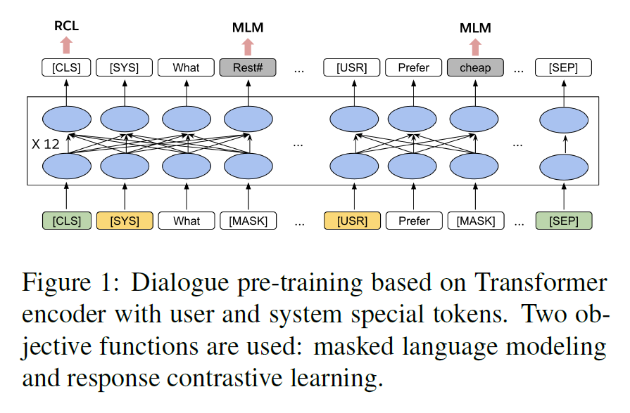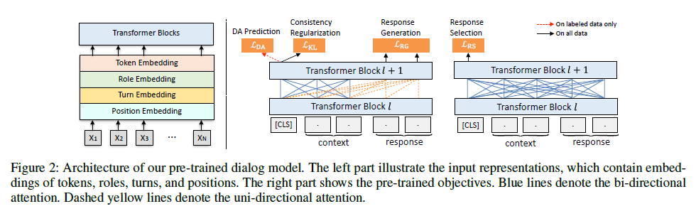 一个简单的方式是将有监督对话动作分类损失和预训练的无监督 MLM 损失一起进行多任务训练,但这种方式存在三个问题: