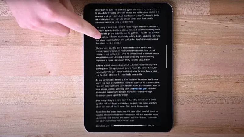 今年9月,第六代iPad mini发布几天后,一些用户开始注意到,在设备上以纵向滚动时,文字看起来略有不均匀。具体地说,滚动浏览时,屏幕左侧的文本似乎比屏幕右侧的文本稍微滞后。