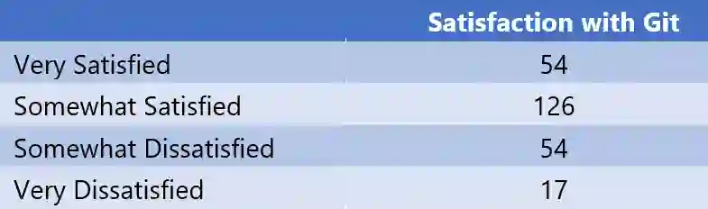 为了了解 Git 的部署是否成功,我们对开发团队进行了“满意度”的调研,同时也挖掘了其他信息。部署两周后,第一次调研结果出来了: