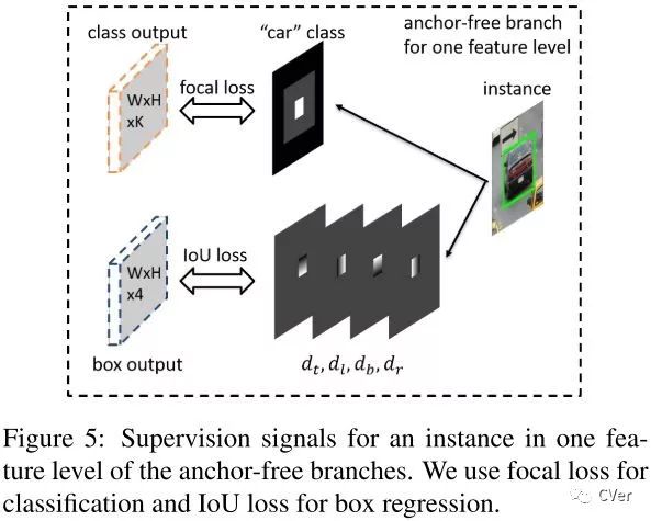 4.FSAF和FCOS的回归预测的是到4个边界的距离,而FoveaBox的回归预测的是一个坐标转换。