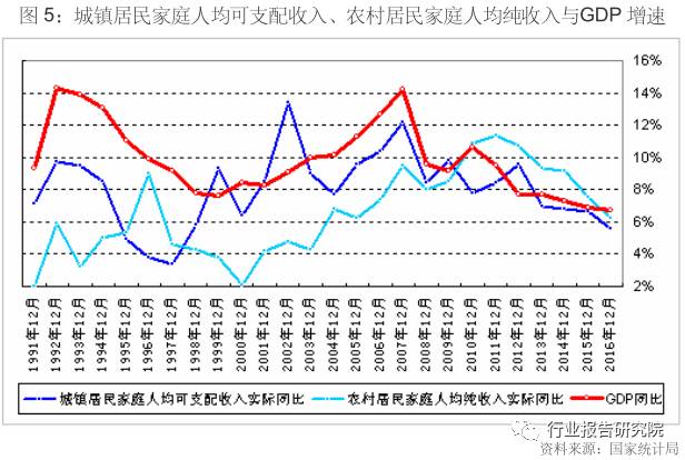 从比较长时间看,居民收入增速低于国内生产总值增速。中国贫富两级分化,平均数并不能反映广大民众的真实收入情况。近几年,国内生产总值增速下行,居民收入增速也跟随下行,而且下行速度更快。