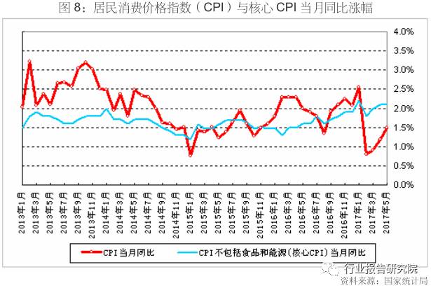 2017年下半年,食品价格异常波动对居民消费价格指数(CPI)的影响将逐渐降低,居民消费价格指数(CPI)预计缓慢上行到2%左右水平。