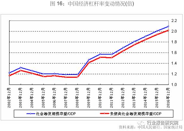 负债类社会融资年末余额与当年国内生产总值(GDP)比值是反应经济杠杆率的重要指标。2016年末,中国负债类社会融资年末余额与当年国内生产总值(GDP)比值超过200%,2017年前几个月继续上升。