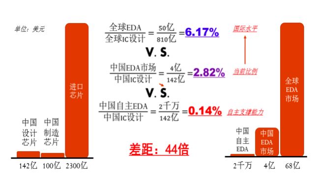 国内EDA(电子设计自动化)市场发展较为迅速,但本土EDA工具的市场严重落后。从国际上看,EDA与IC设计产值的比例大概在6%,而国内EDA/IC设计的比值只有不到3%,本土EDA的比值更低,只有0.14%,相差40多倍。本土EDA工具需要更快更高效的发展,才能有效支撑我国整个集成电路设计的发展。