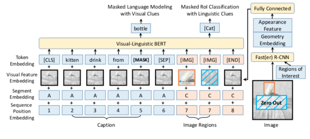 预训练和精整框架如何应用于通用语言和可视化表示的结合学习中?我们找到一个很好的案例:Visual-Linguistic BERT 以Transformer架构为主干,与R-CNNs相结合。尽管这不是同类模型中的首个,但它是对现存模型的更新与提高,并且将Visual Commonsense Reasoning(VCR)的基准提高到一个新的高度。