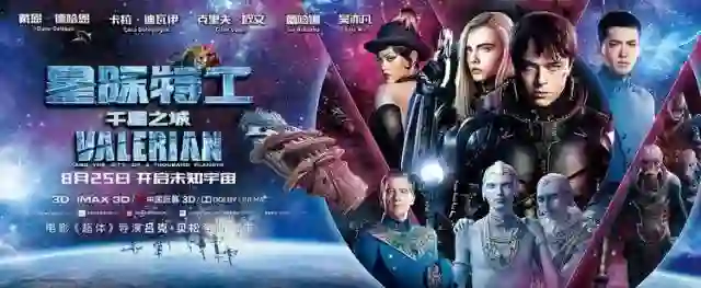 由执导《这个杀手不太冷》的吕克·贝松执导、编剧的电影,讲述28世纪的人类发现时空穿越后,特工进行“时空服务”时发生的故事。影片最大的亮点是特效,为呼应“千星之城”,吕克·贝松花费2.1亿美金构造出了28世纪人类与3000多种外星生物共同生活的场景,造型多样,想象丰富。