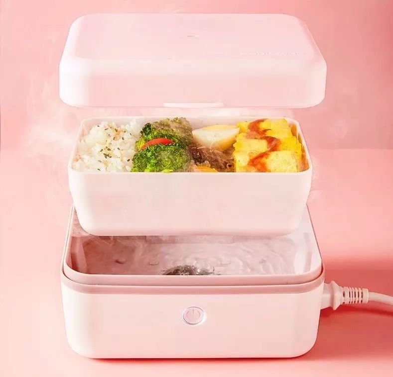 2、放入装好饭菜的内胆盒,打开内盒的盖子,盖好加热盒的盖子,让蒸汽能够充分进入饭菜里面。