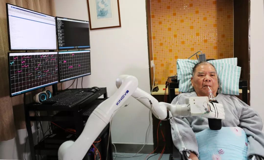 “双脑计划”重要科研成果,求是高等研究院“脑机接口”团队与浙江大学医学院附属第二医院神经外科合作完成国内第一例植入式脑机接口临床研究,患者可以完全利用大脑运动皮层信号精准控制外部机械臂与机械手实现三维空间的运动,同时首次证明高龄患者利用植入式脑机接口进行复杂而有效的运动控制是可行的。 请关注,公众号:浙江大学国内首例!72岁高位截瘫患者用意念喝可乐、打麻将