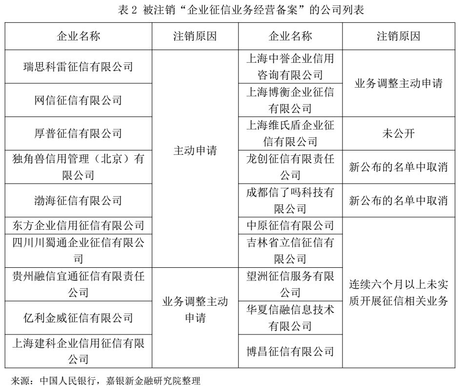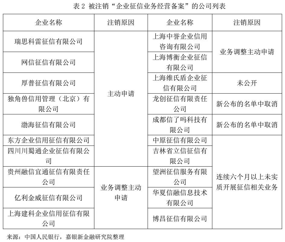 在注销企业名单中,大多数企业是长期未实质性开展征信业务或业务调整原因,主动或被动注销了资质。究其根源,主要是当前我国的企业征信市场中大部分机构业务模式或盈利模式不清晰。
