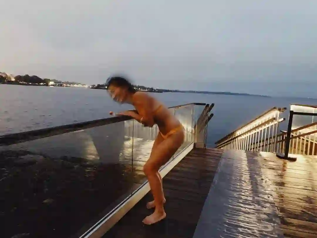 我们去的这个Loyly桑拿房外面就是大海,天渐渐黑下来,气温也慢慢降到零度。秉持着「来都来了」的精神,我决定拼了。