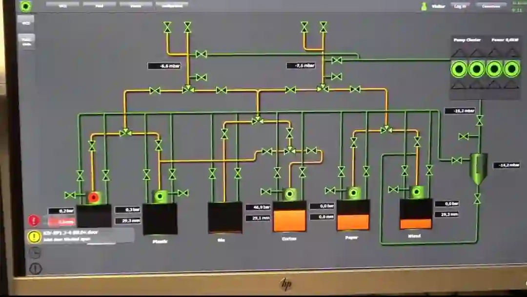 压缩罐一旦即将装满,机器和中控室都会发出警报,到时候将由卡车将这些压缩后的垃圾送往下一站。