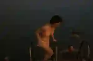 在温度超高的烟熏桑拿蒸了15分钟后,我进行了第一次尝试,还没跑到海边就冷下来了,海水刚没过膝盖就冻得放弃了。毕竟零度的天气,几乎光着膀子在外面跑,还要扎进冰海里,是不是疯了。