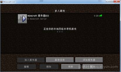 首先启动mc选择多人模式然后添加自己的阿里云ECS服务器,看到信号指示标识绿色满格时就代表OK了。