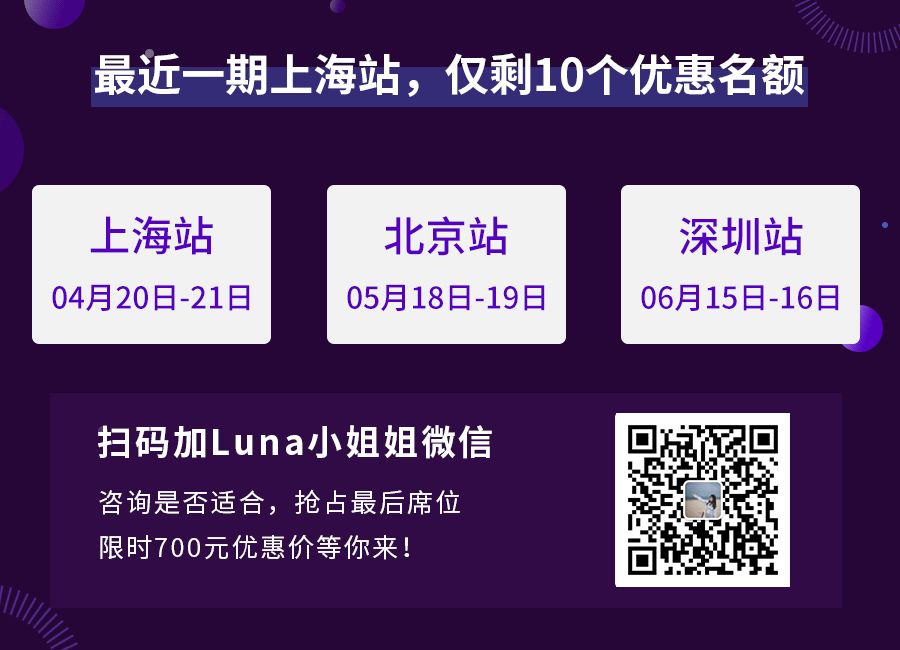 敲黑板,划重点:上海站即将开课,仅剩最后10个优惠名额!
