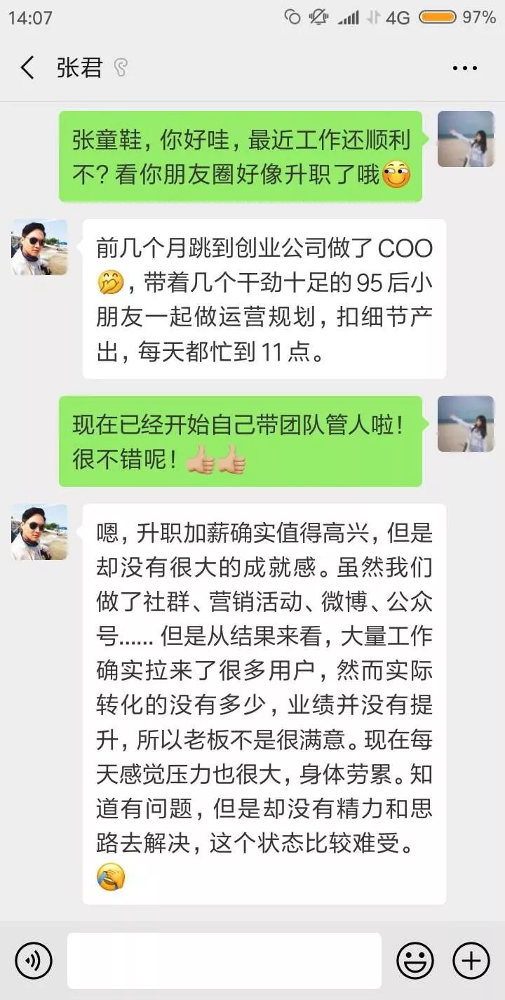 天天加班,貌似一切运营井井有条,却不能拉来实际转化和业绩产出,下属员工也会直接间接的感受到“没成就感、没收获”的负面情绪。这对于整个团队来说是危险的。