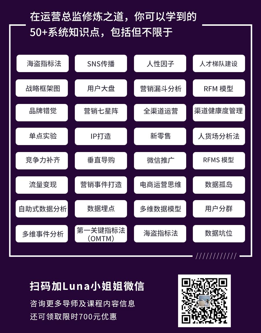 在成为一个优秀的全栈运营之外,团队管理、数据分析、品牌营销、流量变现和业绩增长等都需要花费更多的精力时间去积累和学习。