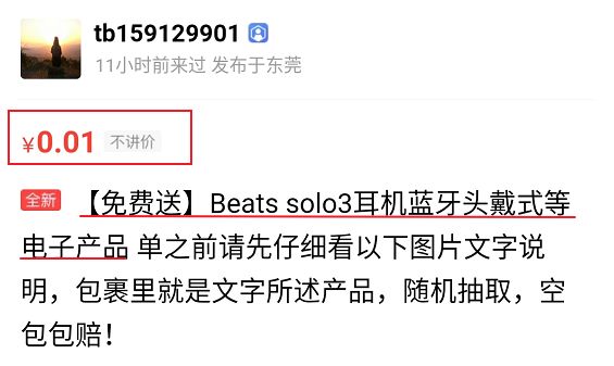 这类套路的核心思路非常简单:用看起来高大上其实成本低廉的商品吸引别人,打着免费送的噱头,从中赚高额的“ 快递费 ”差价。