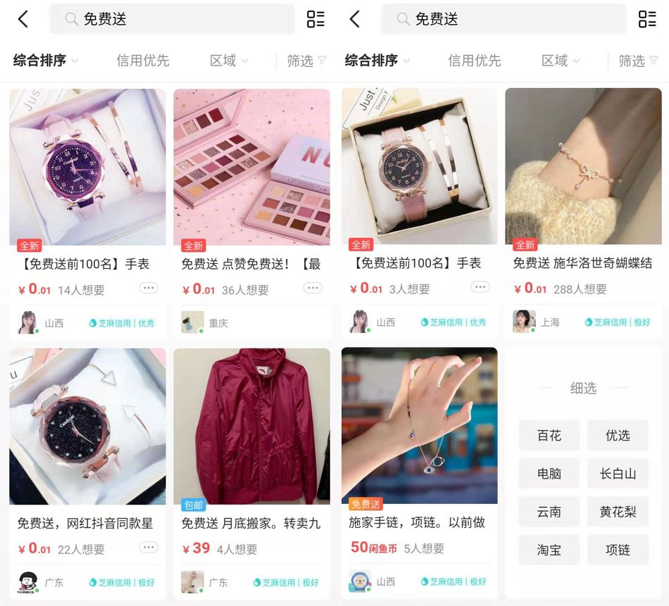 无论是当年的朋友圈免费送,还是现在的咸鱼免费送,新瓶装旧酒,轻松收割了一茬又一茬的智商税。骗倒了一波又一波想要贪小便宜的人。