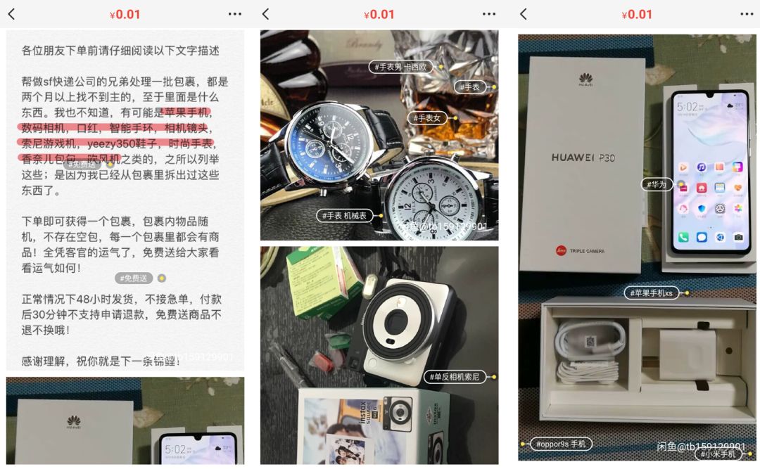 苹果手机、华为手机、oppo 手机、索尼相机、索尼游戏机、香奈儿包包等等,统统都只要一分钱。
