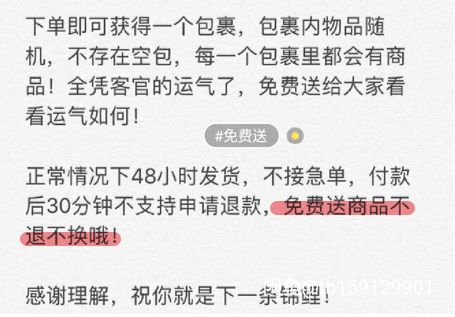 人卖家可是提前打过招呼了:“ 免费送商品,不退不换哦”。