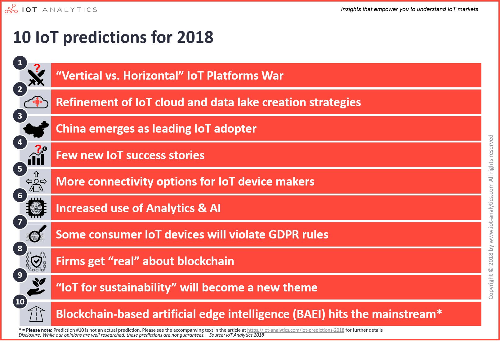 知名物联网行业研究机构IoT Analytics曾在文章中提出过4个关于2017年的物联网预测,如今看来,这些预测大都变成了现实。站在当下这个时间点上,在给出2018年十大物联网预测之前,我们有必要针对去年这4个预测先做下回顾,同时针对这些预测发表我们最新的想法: