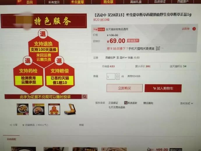 真检验人家赔你钱。你买少量,最多赔你几千。人家怕神马。一年碰不到一两个。你在天猫上搞他根本,根本搞不过,我那个蟹那么缺称。