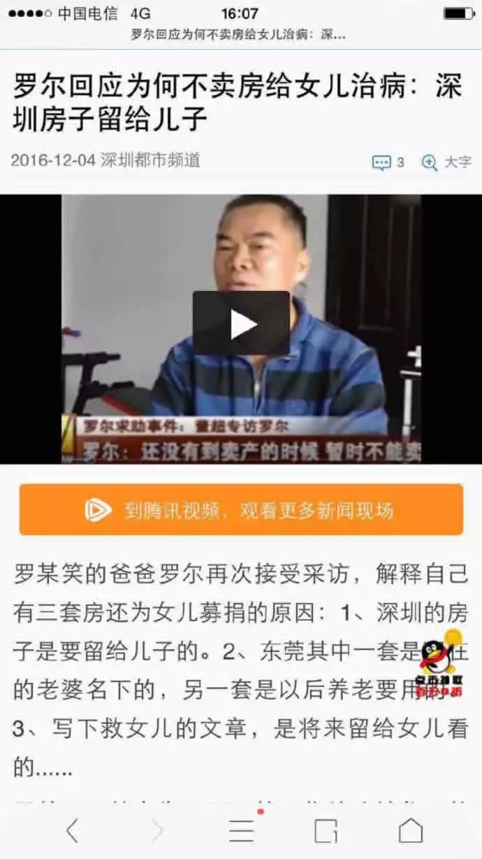 再说病才看几万元,还不到一定要卖房子的地步。估计就想捞外快,结果写的文章太感人,出大事(演技太好,演出事)。