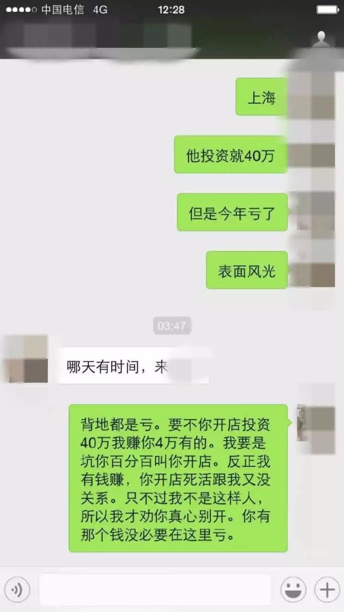 很多人整天招代理拉下线,整天叫你开店。你开个店,总要进一大批货,人家赚你几万有的。你后期死活关人家吊事。