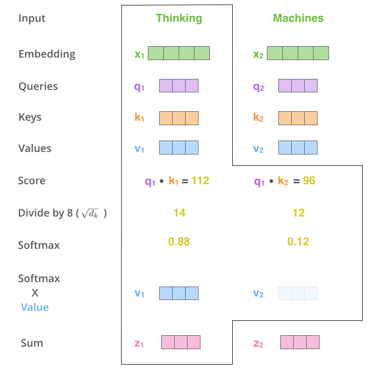 如图所示,Scaled Dot-Product Attention的计算过程可以分成7个步骤: