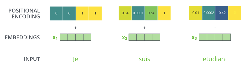 如图所示,由于机器翻译任务跟输入单词的顺序有关,Transformer在编码输入单词的嵌入向量时引入了positional encoding,这样Transformer就能够区分出输入单词的位置了。