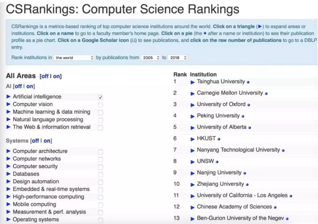 ▌全球高校 Artificial intelligence 排名,清华力压卡内基梅隆