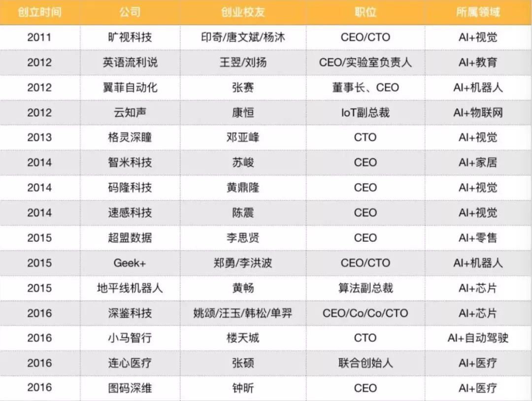 营长此前整理了 2011 年以来部分清华系 AI 初创公司的代表,可以一窥清华在人工智能创业浪潮中的影响力。