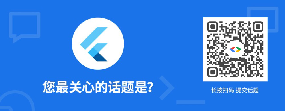 Flutter 在 2020 年依然没有停止前进的脚步。做为一个根植于社区的大型开源项目,Flutter 每一次更新都离不开开发者社区的活跃和贡献。我们从大家的反馈中获益良多,也希望与开发者交流您更关心的话题!