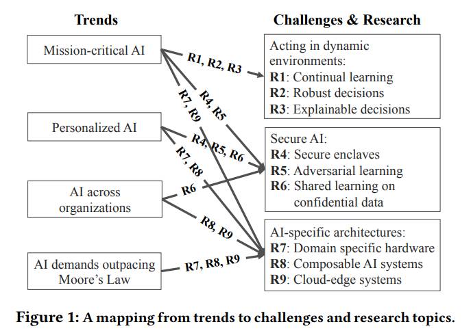 本文总结了几个开放性的系统、架构和安全方面的研究课题。我们希望这些问题能够启发新的研究来推动人工智能的发展,使其计算能力更强,具有可解释性、安全性和可靠性。