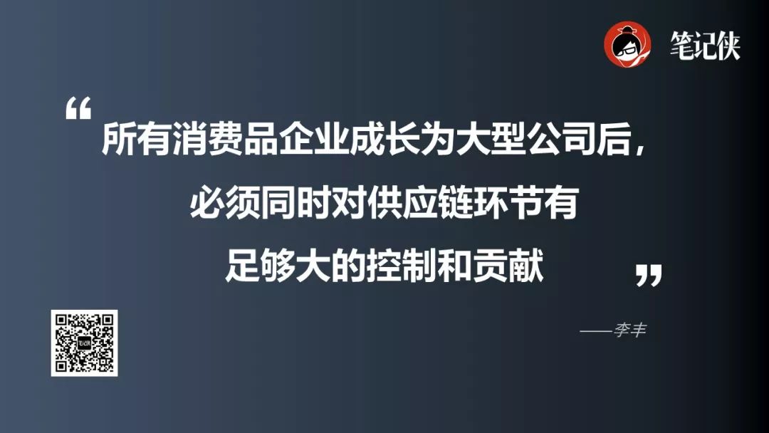 所有的消费品企业在成长为中大型公司以后,它有一个 100% 的历史使命和基因:它必须同时对供应链环节有足够大的控制和足够大的贡献。
