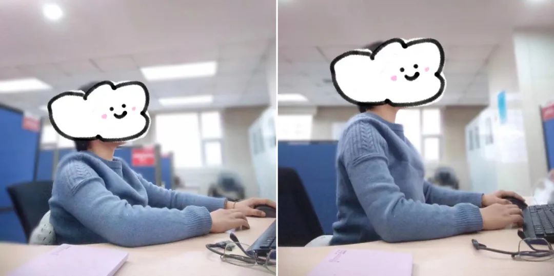 我们在日常办公时不会时刻注意自己的坐姿,因此可以时不时的给自己拍一张办公的侧面照片,以客观的视角检查自己的坐姿,更能发现问题。同时,也可以观察一下自己的电脑的高度是否合适,电脑应放置在与自己视线齐平的高度。
