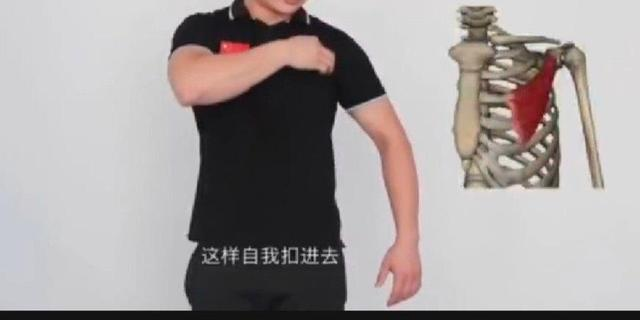 这两块肌肉我们可以在日常经常松解,胸小肌位置较深,需要按得比较深再顺着肌肉走向按揉。