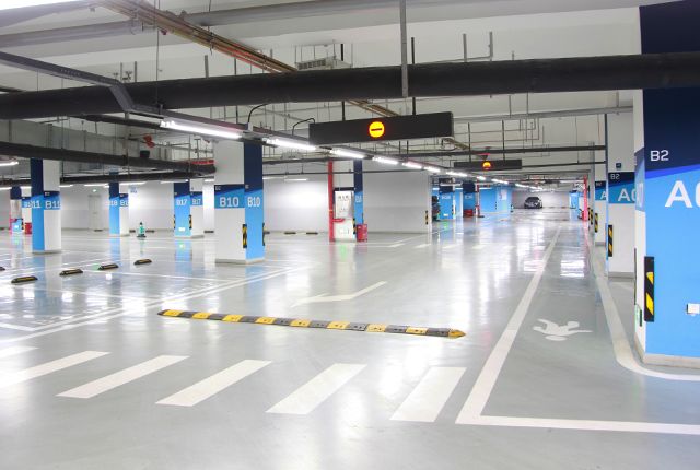 这是朝阳大悦城停车场,分为B1、B2、B3三层,有1640个停车位。平时车流量大约5000,周末能达到7500或更高。