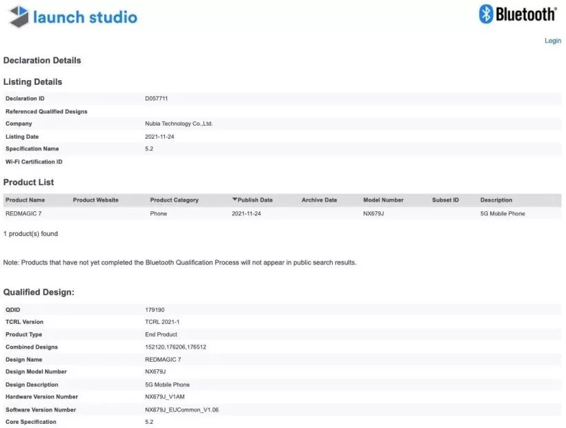 此前据知名数码博主 @数码闲聊站 爆料,红魔 7 系列游戏手机(NX679J)目前已入网,已经拿到了蓝牙 SIG 认证。该系列将拥有大电池与百瓦快充,支持蓝牙 5.2,或将在年底前发布。