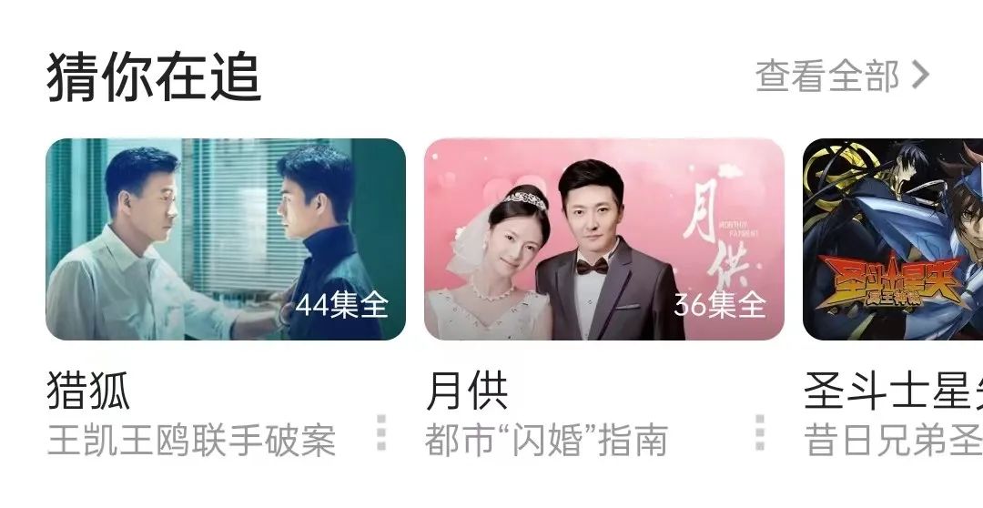 就像视频APP中的常看推荐栏一样。根据用户的浏览频率,在首页banner下方,推荐用户当前观看最多的剧,节省用户找剧、查剧的时间和精力。