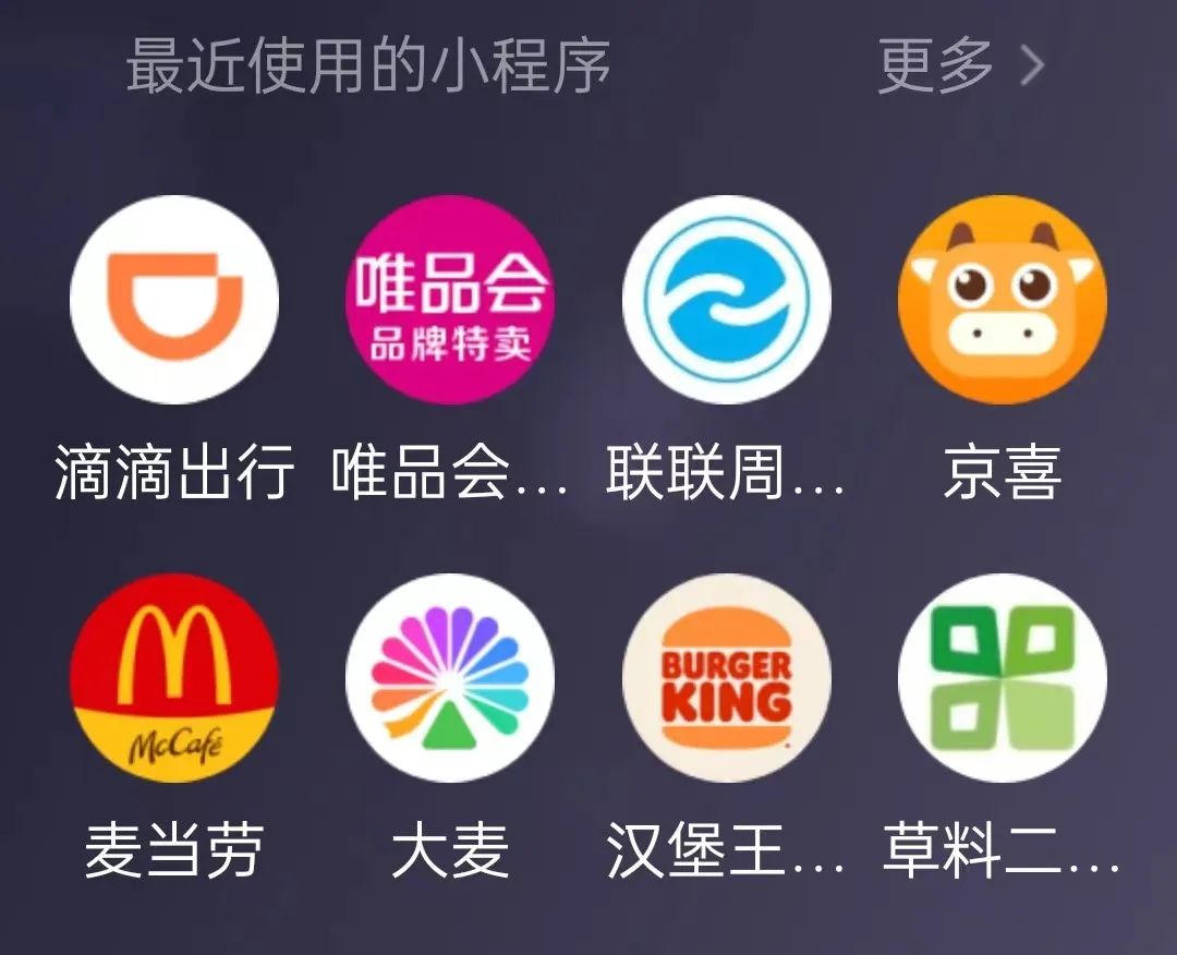 微信也会展现近期使用过的小程序,让用户能快速找到。