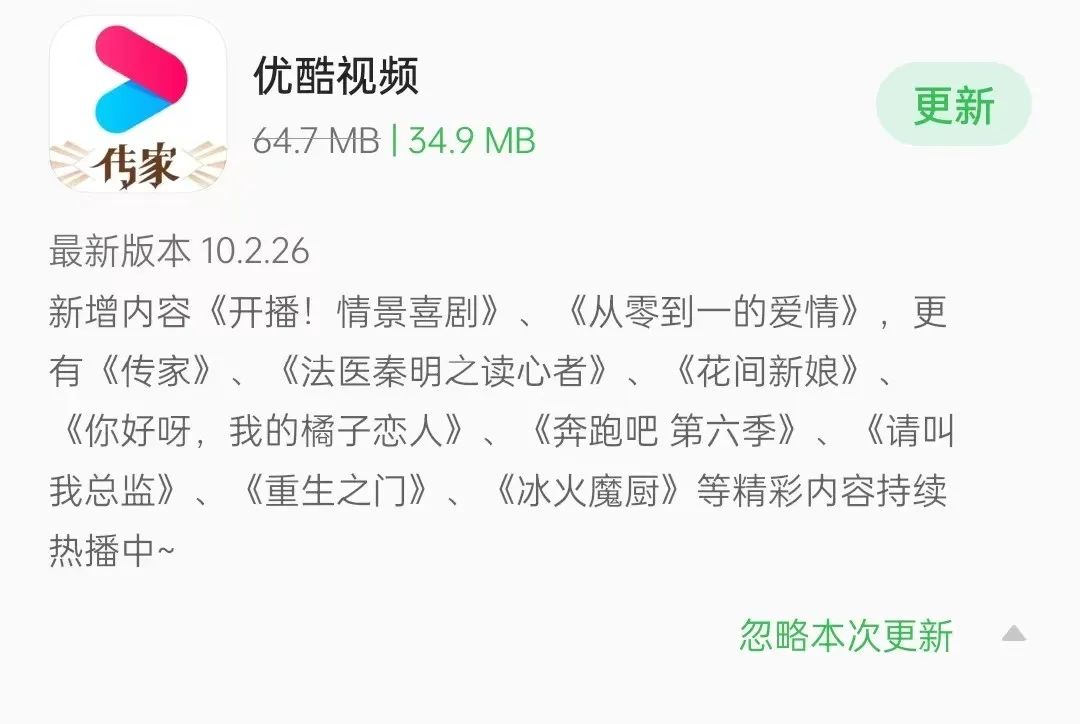 说到底,日常的一些软件升级,并没有给大部分用户,带来核心体验的提升。却需要用户消耗时间、精力、流量、手机容量去升级。