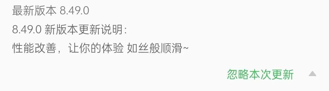 比如微信平日里的小幅更新,不会直接做出弹窗提示,而是用小红点进行弱提示。需要更新的用户,自可以进入到更新界面中,享用新版本。