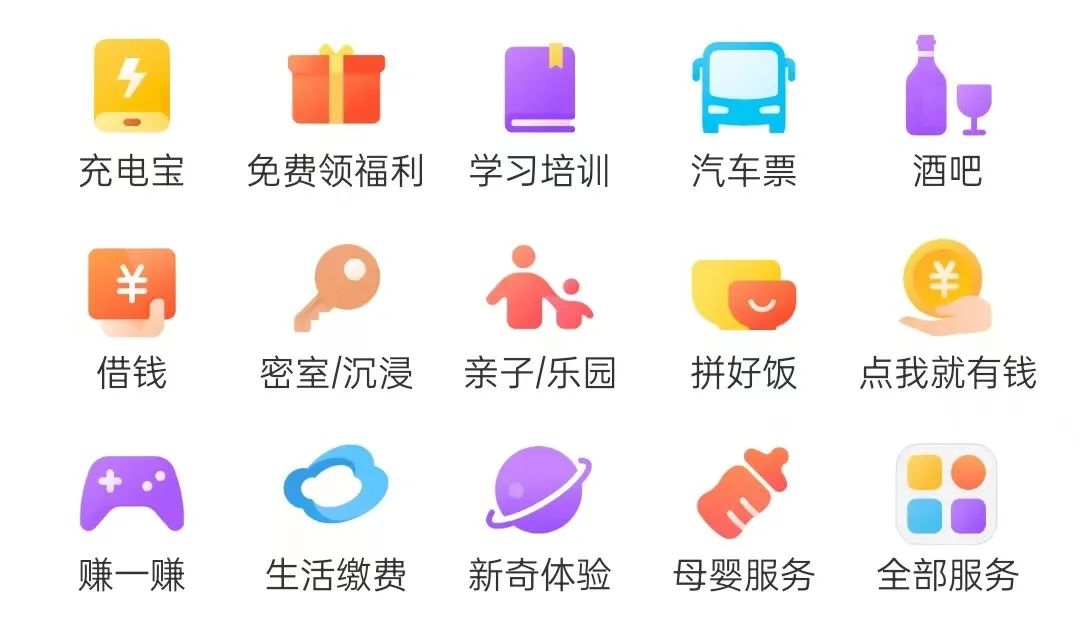 当产品体量变大、包含功能较多时,我们同样可以把功能入口,用类似方式,展示在首页固定位置。并根据每个用户的使用习惯,把他最常用的功能推给他。