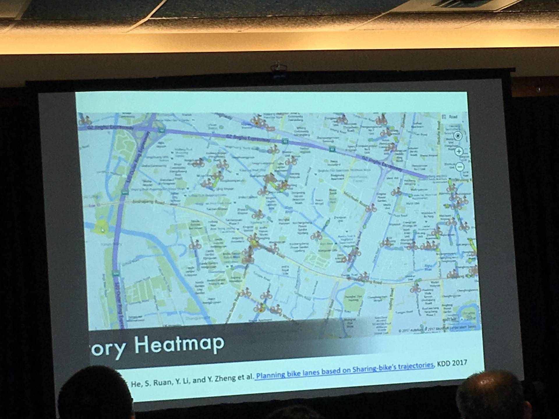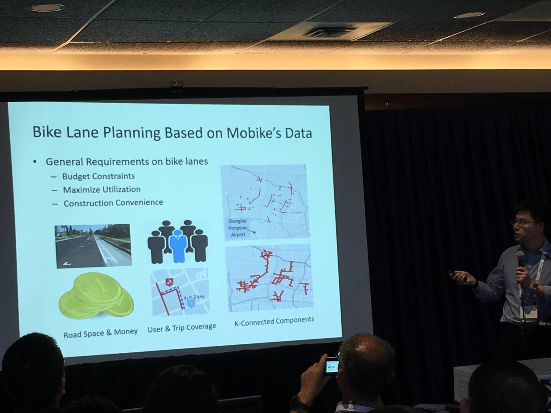 郑宇也为我们介绍了城市大数据平台的两项重要应用:为电动汽车充电站选址、规划城市自行车道。