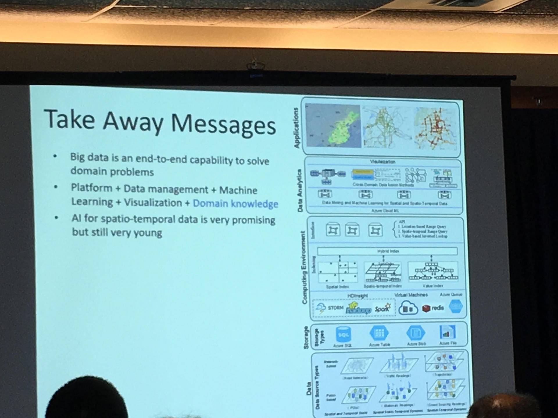 针对这些问题,郑宇领导的微软城市计算科研团队提出了一种新型城市大数据平台。这一平台具备6中数据结构,4中存储方式,支持包括hadoop和spark在内的多种运算环境。