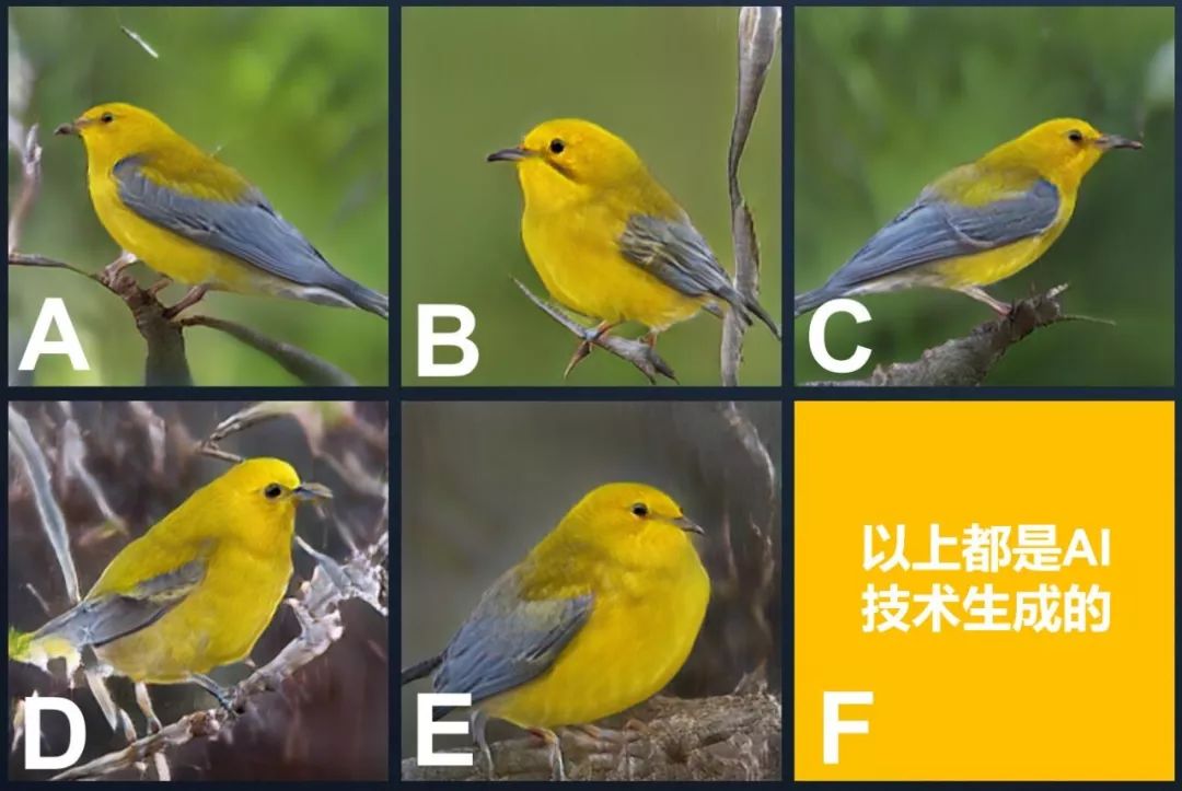 题目1:栩栩如生的小鸟,以下哪一只是由AI技术生成?(20分)
