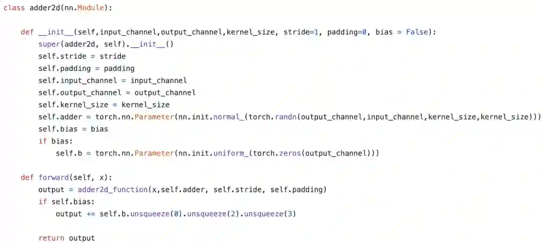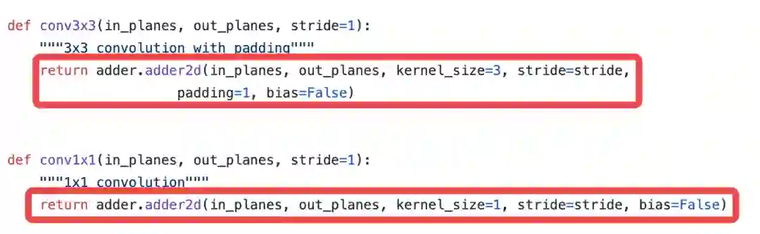 这样backbone就是一个模块,可以随意调用你想要的主干网络,而且还可以自己随意抽取对应的检测头,那接下来我们看看加法网络(AdderNet)的代码: