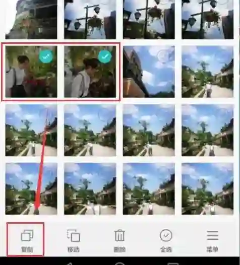 打开手机相册,选择想要传到U盘里的照片。你可以一次性全选,也可以部分选择。选择好要转存的图片后,下面会出现有【复制】【移动按钮】等按钮。