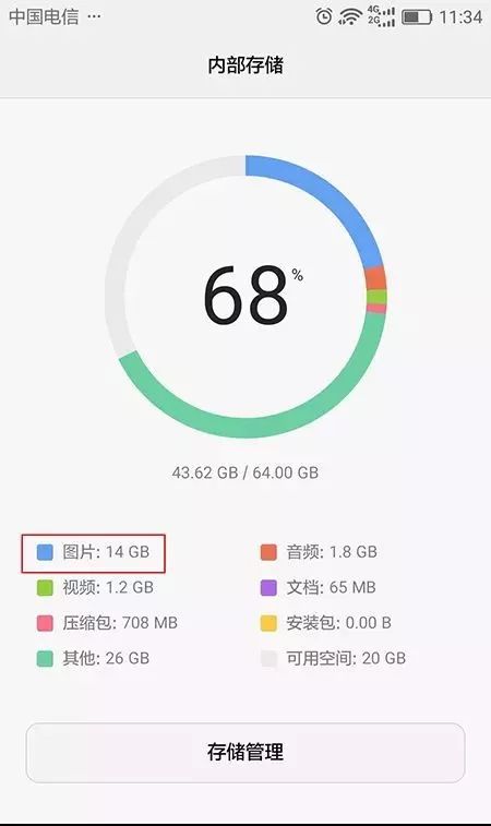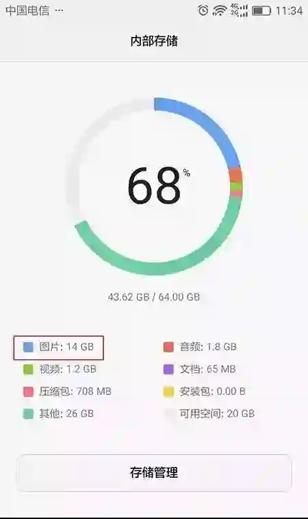 可以进入手机的【文件管理】-【内部存储】看看,你手机里的照片到底占据了多少内存空间。